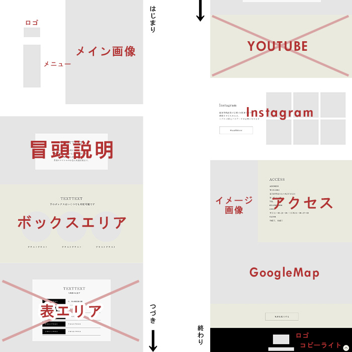 「パスタの画像をダイナミックに使いたい。」というご要望がありましたのでこちらのテンプレートを提案させて頂きました。